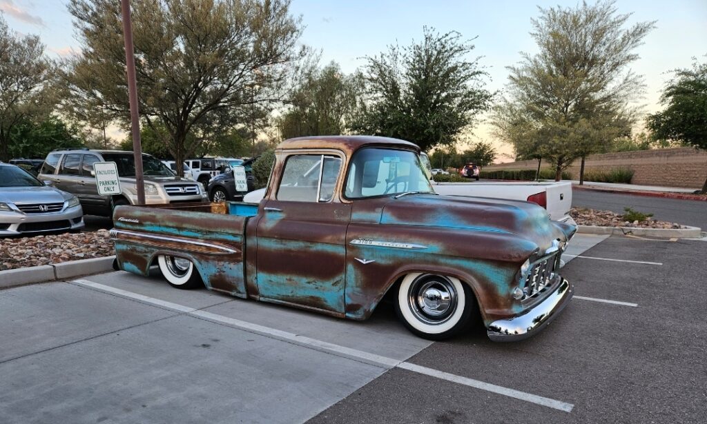 Vortec V8 with a 4L60 trans. Airride, dakota digital dash, retro sound Bluetooth stereo, Snowden custom seat, lokar shifter, mustang 2 front end ,power brakes and steering. Truck runs good. No trades. $57k OBO