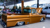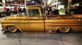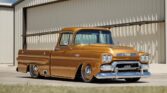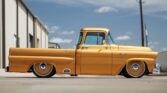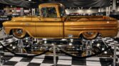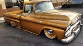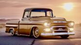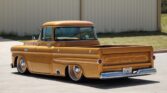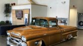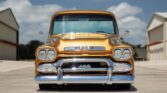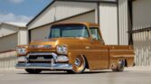 Delmo build out of Arizona with only 520 miles. This custom 1959 GMC 100 short-bed fleetside big-window pickup known as “Old Gold” was Street Truck magazine’s Truck of the Year as well as being unveiled at Sema. It underwent a frame-off build using Porterbuilt chassis, and was recently updated with AccuAir air management. It is powered by a custom-built Tri-Power LS3 engine using Autotrend EFI fuel injection mated to a 4L70E transmission. Stopping power is provided by Willwood disc brakes . It features a fully powder-coated chassis with stainless-steel plumbing. This truck rides on custom Delmo Special 22-inch wheels, and features fresh bed wood, glass, seals and trim. Inside, “Old Gold” features a stereo by Kicker, radiator by Be Cool and custom gauges by Dakota Digital. Tons of build pics throughout build. This is the one you have been searching for.
