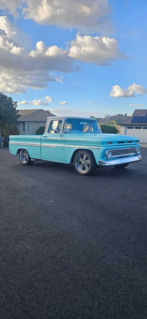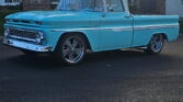 63 C10 .All new paint, new bed sides, tail gate, and new front fenders. Chevy 350 small block with 700R4. 4 wheel power disc brakes, power steering, and new side trim moldings. All stainless polished, all new side moldings.New front bumper, new roll pan, and grill repolished . New bed stainless, wood redone,I nterior redone, and all new window rubber seals and felts. New front windshield, new carpet . Aluminum radiator and Electric fan. Patriot headers, Edelbrock manifold, and carb. New valve covers, and air cleaner New brake booster .New 20 in 8 1/2 front 20 x 9 1/2 rear US MAGS and Nitto tires
