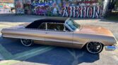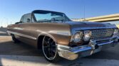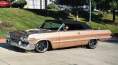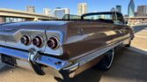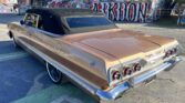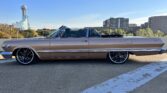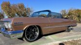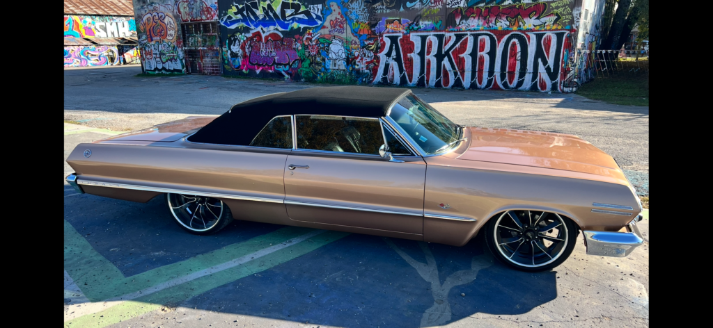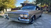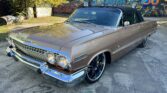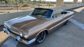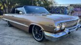 1963 Chevrolet Impala Super Sport Convertible- has been comprehensively upgraded with a blend of factory-correct aesthetics and modern drivability. The car is finished in factory Saddle Tan (paint code) over a black bucket-seat interior, and it retains all factory floors and body panels. Extensive updates include a crate 350ci V8, Holley Sniper EFI, 700R4 four-speed automatic overdrive transmission, four-corner air suspension, four-wheel disc brakes, and modern comfort features including Vintage Air A/C and Dakota Digital instrumentation. The vehicle is also equipped with a professionally installed trunk audio system with Bluetooth capability. Factory VIN and body tags have been verified, and the car is offered with a clean title.