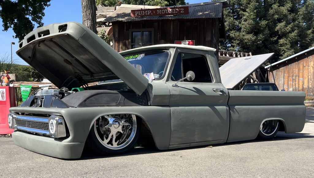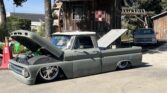 Motor is a 5.3 all aluminum block with almost 94k miles. The transmission is a 4L60e with about 3k miles on it. The truck is sitting on a powder coated custom 2×5 airbag chassis with Slam Specialties valve block and switch box. All new brake lines and fuel lines. Truck has a Boyd’s fuel cell and dual optima batteries. It’s sitting on 22″ Colorado Custom wheels and Toyo Tires with about 2k miles on them. McGaughys 13″ slotted/drilled disc front and rebuilt drums in the rear. Rearend is narrowed and has 3.73 Eaton trutrac. Truck currently is in primer, as bodywork is in process. Has custom inner fenders front and rear, custom rear roll pan and front roll pan, shaved tailgate skin and stake pockets. Interior has Dakota Digital HDX gauges, Vintage Air A/C, completely sound deadened with new carpet and Bluetooth stereo. Located in Fresno, CA.