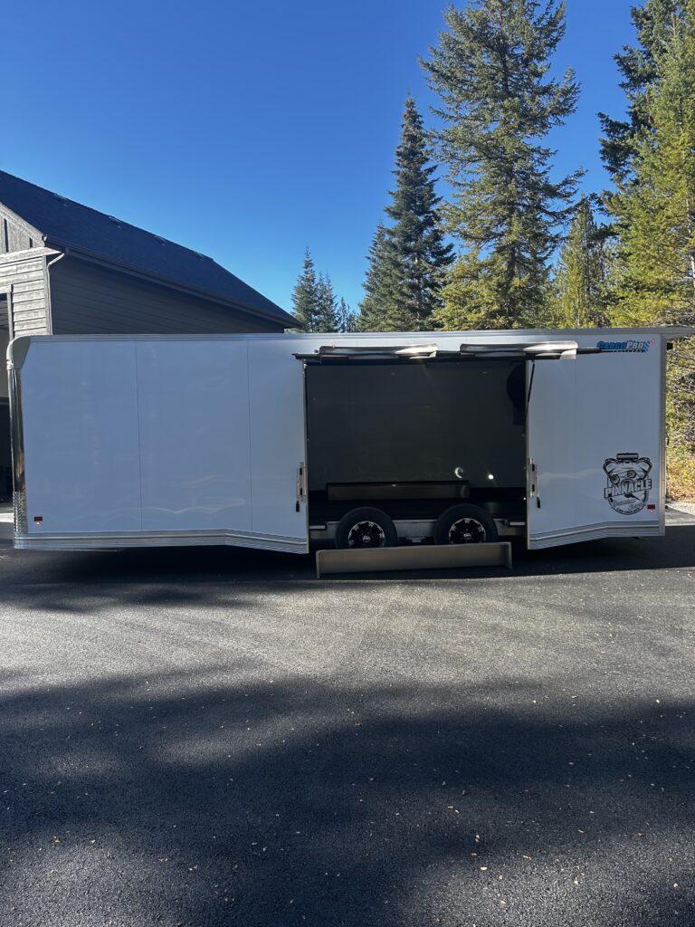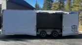 2022 Cargo Pro Pinnacle 24 ft. all aluminum construction cabinets up front dual 5k torsion axles 24″ stone guard 72″x96″ escape door with removeable fender premium light package 11o v package 60 amp breaker panel w/ converter drop down stabilizer jacks at rear upgrades include E-track recessed in rubber coin stamp floor 6′ extended folding ramps 10k winch w/ HD mount spare tire mounted inside excellent condition only traveled 3000 miles.