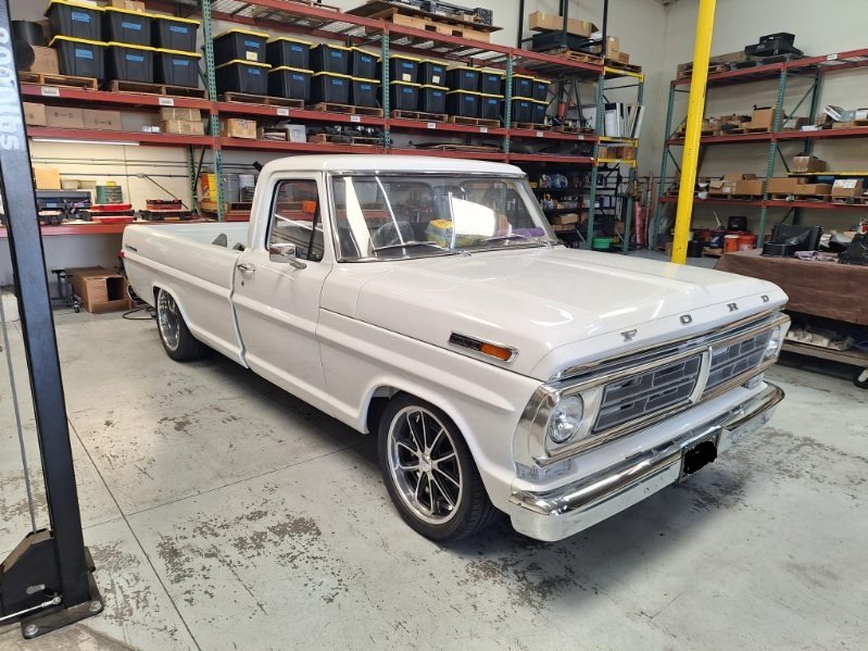 CLEAN TITLE. COMPLETE FRAME OFF RESTORATION. 71 FORD F100 Long Bed Sport Custom. Automatic. OXFORD WHITE. (SOLVENT BASE 2 STAGE). ALL ORIGINAL MOULDINGS, REPOLISHED 3.5″ MINI TUB. POWDERCAOTED FRAME AND SUSPENSION. FUEL TANK RELOCATED TO REAR. FE360 (40 OVER) EDELBROCK TOP END KIT. CAM, HEADS, INTAKE MANIFOLD, MANTON 3/8 PUSHRODS, HARLAND SHARP ALUMINUM ROCKER ARMS. HOLLEY 650CFM CARB. PERTRONIX DISTRIBUTOR. EDELBROCK ALUMINUM HV WATER PUMP, 4 ROW ALUMINUM RADIATOR, HEADMAN CERAMIC HEADERS, STAINLESS STEEL EXHAUST SYSTEM. HIPO STARTER. 100AMP SINGLE WIRE ALTERNATOR. C6 3 SPEED AUTO TRANS. B&M 2800 STALL CONVERTER, SFI FLEXPLATE, DERALI EXTERNAL TRANS COOLER WITH ELECTRIC FAN, LOKAR FLOOR SHIFTER, DJM FRONT 3″ DROPBEAMS, REAR LEAF SPRING SUSPENSION ,C NOTCHED, 6″ AXLE FLIP, ALL MOOG STEERING SUSPENSION, QUICK STEER POWER STEERING GEAR BOX, CALVERT TRACTION BARS. 9″ REAR END 3.50 GEAR RATIO, EATON POSI TRACTION, POWER FRONT DISC BRAKES, REAR DRUM BRAKES. 19″ X 8″ 255 40/19 FRONT. 20″ X 12″ 325 35/20 REAR. GOODYEAR TIRES. OPTIMA RED TOP INTERIOR: DYNAMAT- FLOOR , ROOF , DOORS. TMI CUSTOM INTERIOR, BLACK LEATHER, RED STITCHING, DAKOTA GAUGES, FLAMING RIVER TILT COLUMN, OLD AIR AC, 3 POINT SEAT BELTS, CLASSIC CAR RETRO RADIO WITH BLUETOOTH, CONCEALED RADIO ANTENNA, ALPINE 500 WATT 4 CHANNEL AMPLIFIER, ALPINE 1000 WATT MONO AMPLIFIER. (2) ALPINE 10 INCH WOOFERS, (2) ALPINE 3 WAY 6 X 9 INCH. (2) MEMPHIS 6.5″ , (4) MEMPHIS TWEETERS, (2) MEMPHIS CROSSOVERS, STERO SYSTEM WIRED AT 2 OHM. ONLY HAS 30 TEST MILES SINCE COMPLETION 115K – NEGOTIABLE