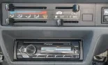 The right-hand-drive cabin features twin bucket seats that have been reupholstered in black vinyl and are joined by a color-coordinated dashboard and door panels. Herculiner molded matting covers the floors, and additional details include an onboard air compressor system, an Auxbeam accessory control system, a 3D-printed drink and phone holder, and a Pioneer stereo with speakers and a subwoofer.