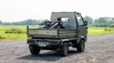 The 656cc inline-three is mounted ahead of the rear axle and is accessed by removing a panel in the bed. Work since 2022 included replacing the timing belt, tensioner, idler, alternator, serpentine belt, thermostat, and coolant tank in addition to installing a gel-type battery with a cover and a disconnect switch. The fuel solenoids were replaced and the carburetor was rebuilt under current ownership.